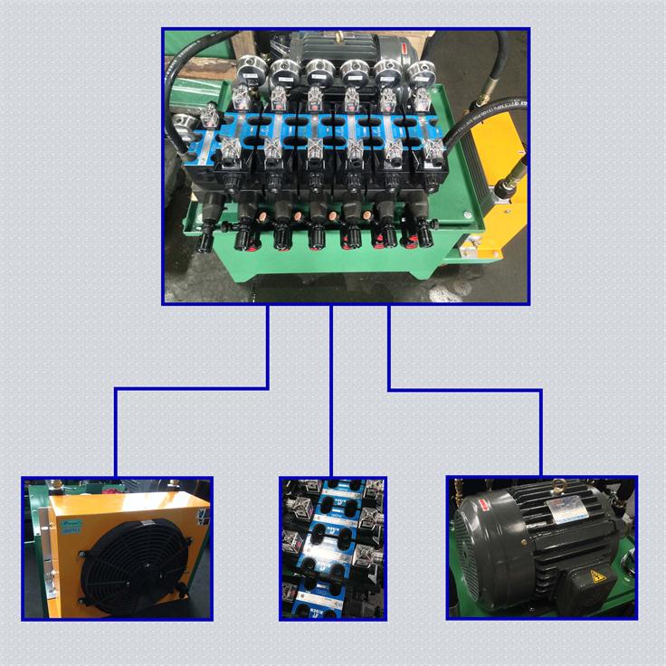 液壓站是由泵裝置、集成塊或閥組合、液壓油風冷卻器、油箱組合而成。